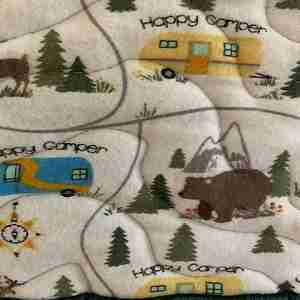 Baby Quilt for Boys in Green is perfect for the newest addition to the family with blocks made of 100% baby flannel. This baby quilt for boys features scenes from the outdoors with paw prints that lead to a friendly bear in the woods.
